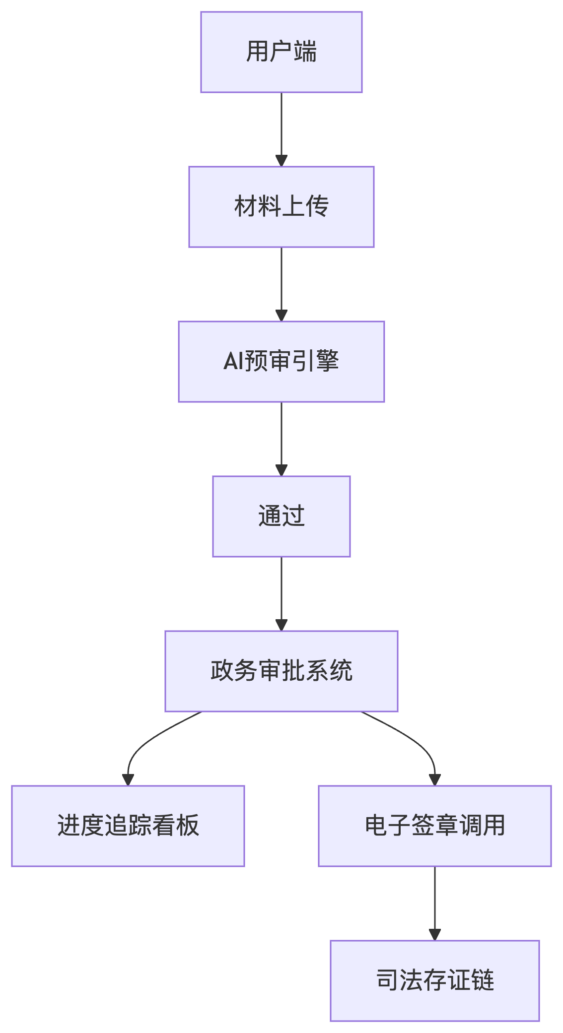 進(jìn)度追蹤中臺:對接政務(wù)專網(wǎng)審批系統(tǒng)獲取實時狀態(tài)、智能預(yù)測剩余時長(基于歷史辦理數(shù)據(jù))